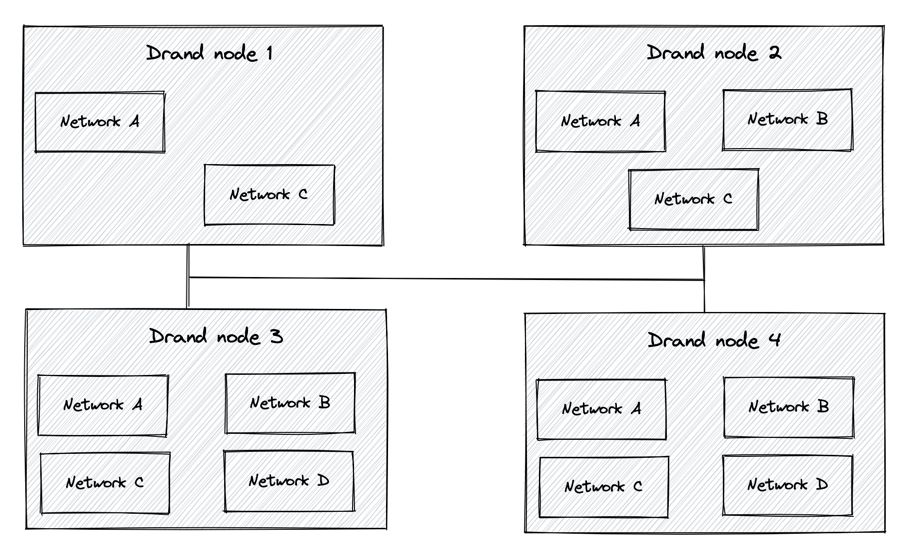 It has to be highlighted that not all members of a drand network, e.g., the League of Entropy (LoE), have to participate in all frequency networks, but instead, networks can form with a subset of nodes.