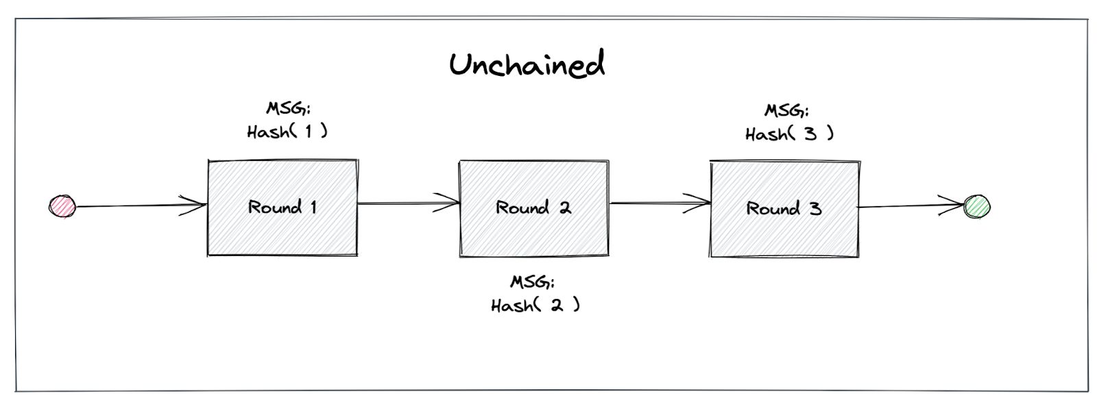 According to the original drand design and implementation, every new beacon is linked to the previous one, i.e., simplistically, every new beacon includes a link to the previous beacon, used to derive the new randomness. This creates a chain of randomness beacons from the current one to the genesis beacon, when the drand network was launched. With this upgrade, we provide the option of each beacon becoming independent of the previous one, or, in other words, randomness can be “unchained”. A new drand network can still run in “chained” mode, although we recommend using the “unchained” randomness version.